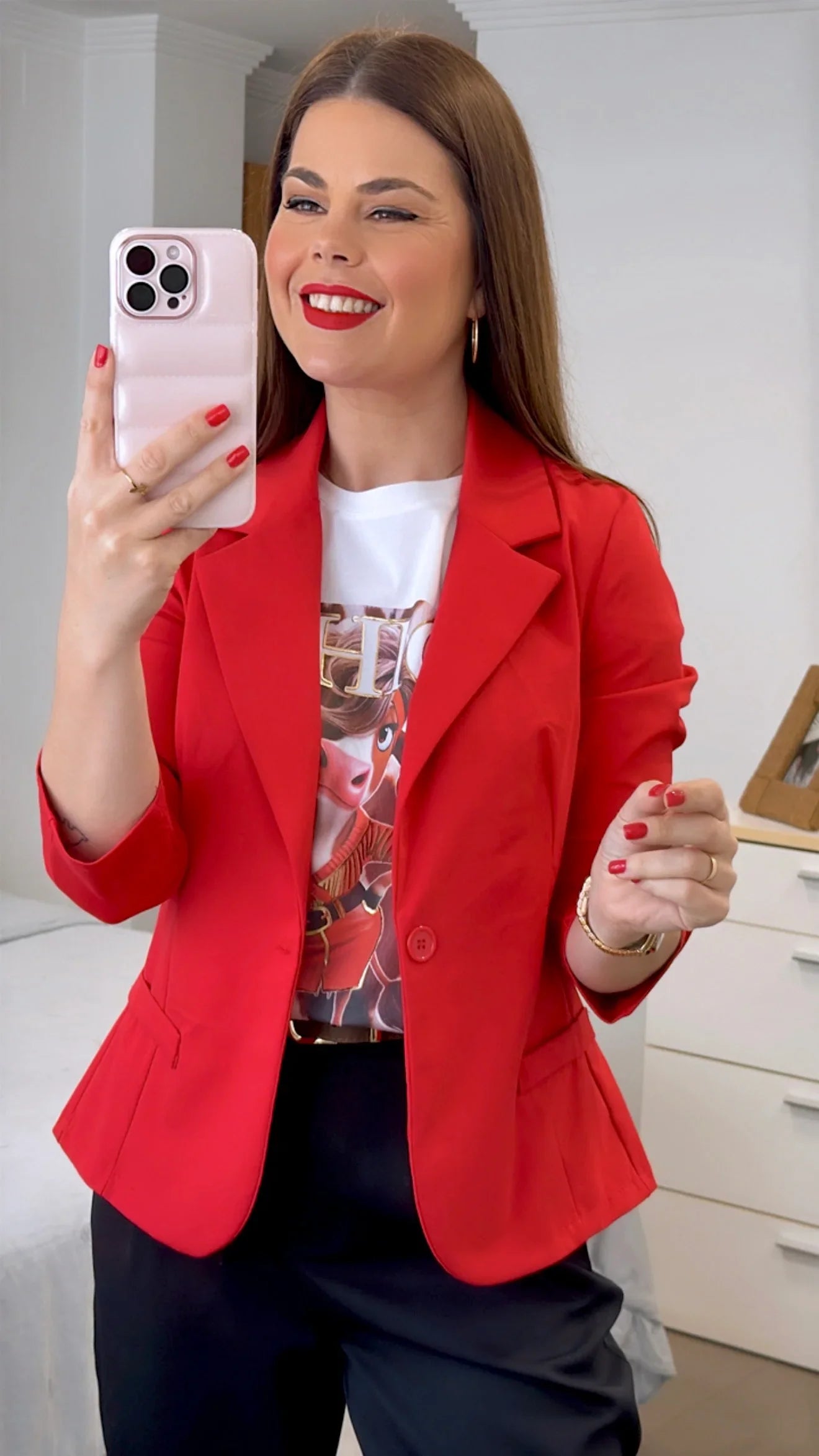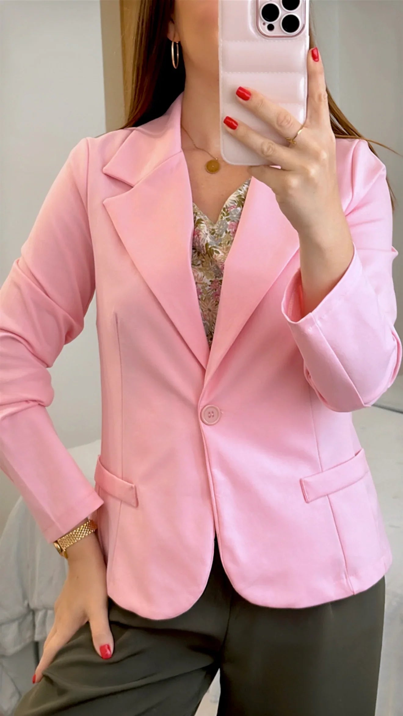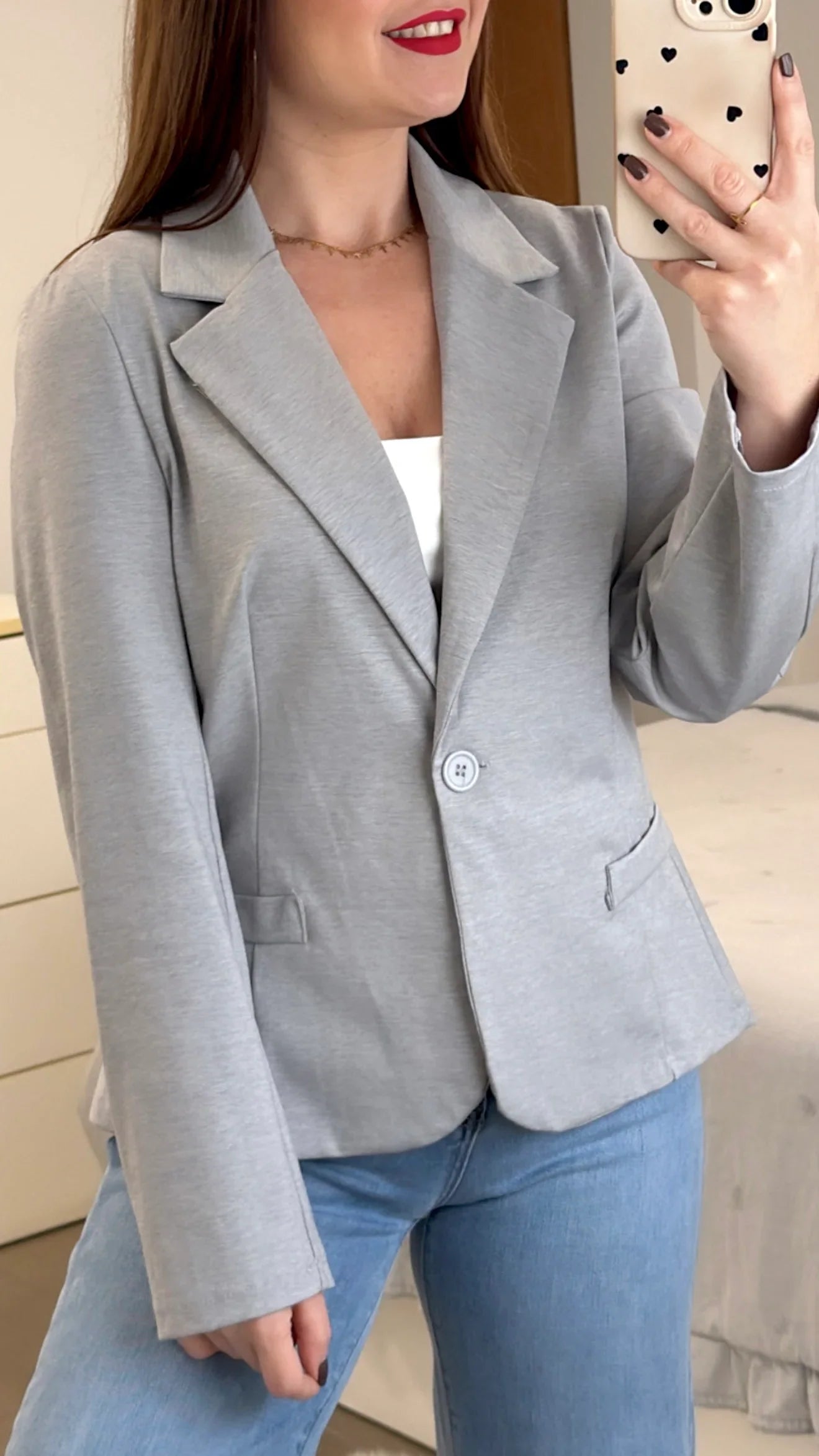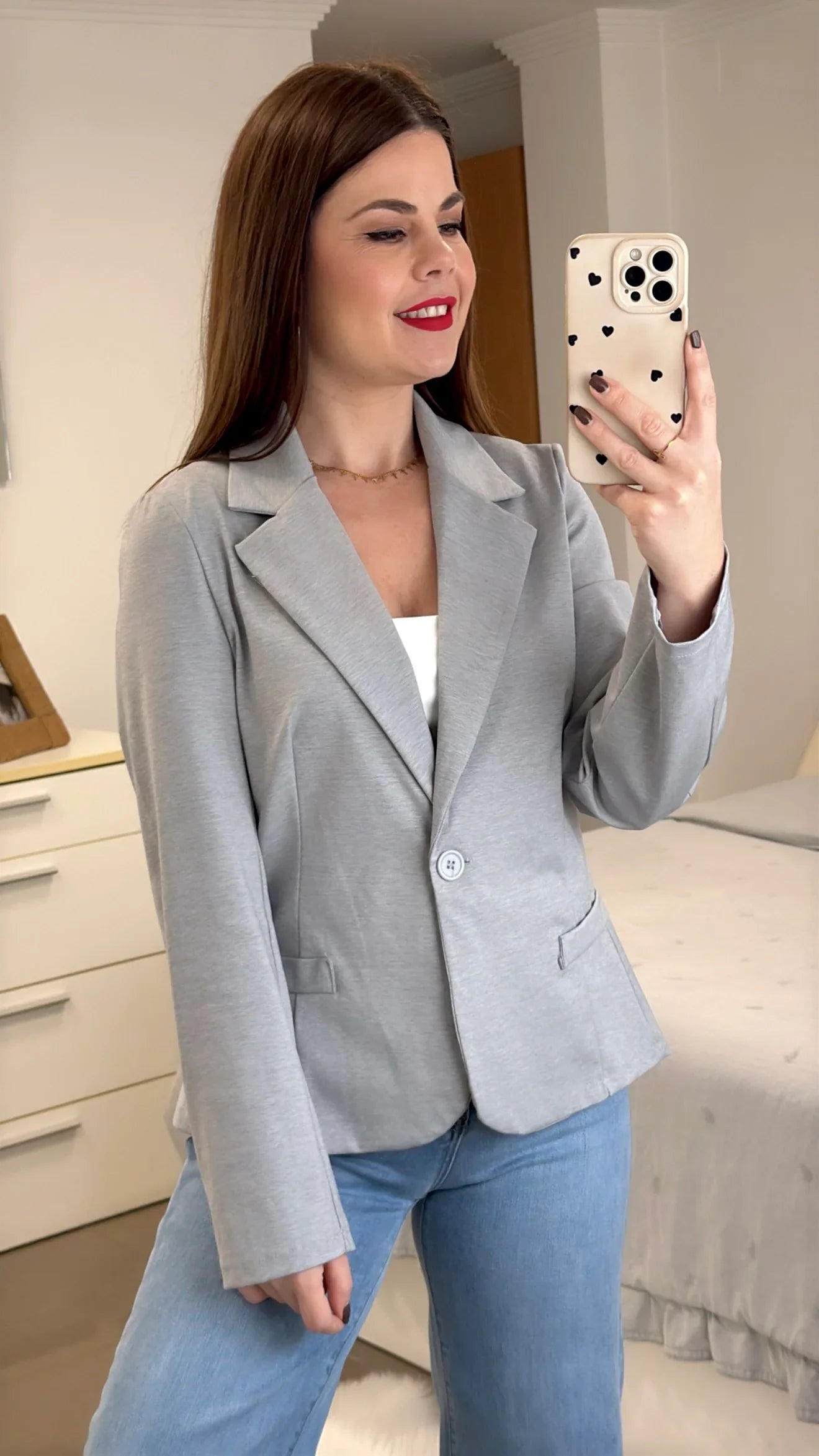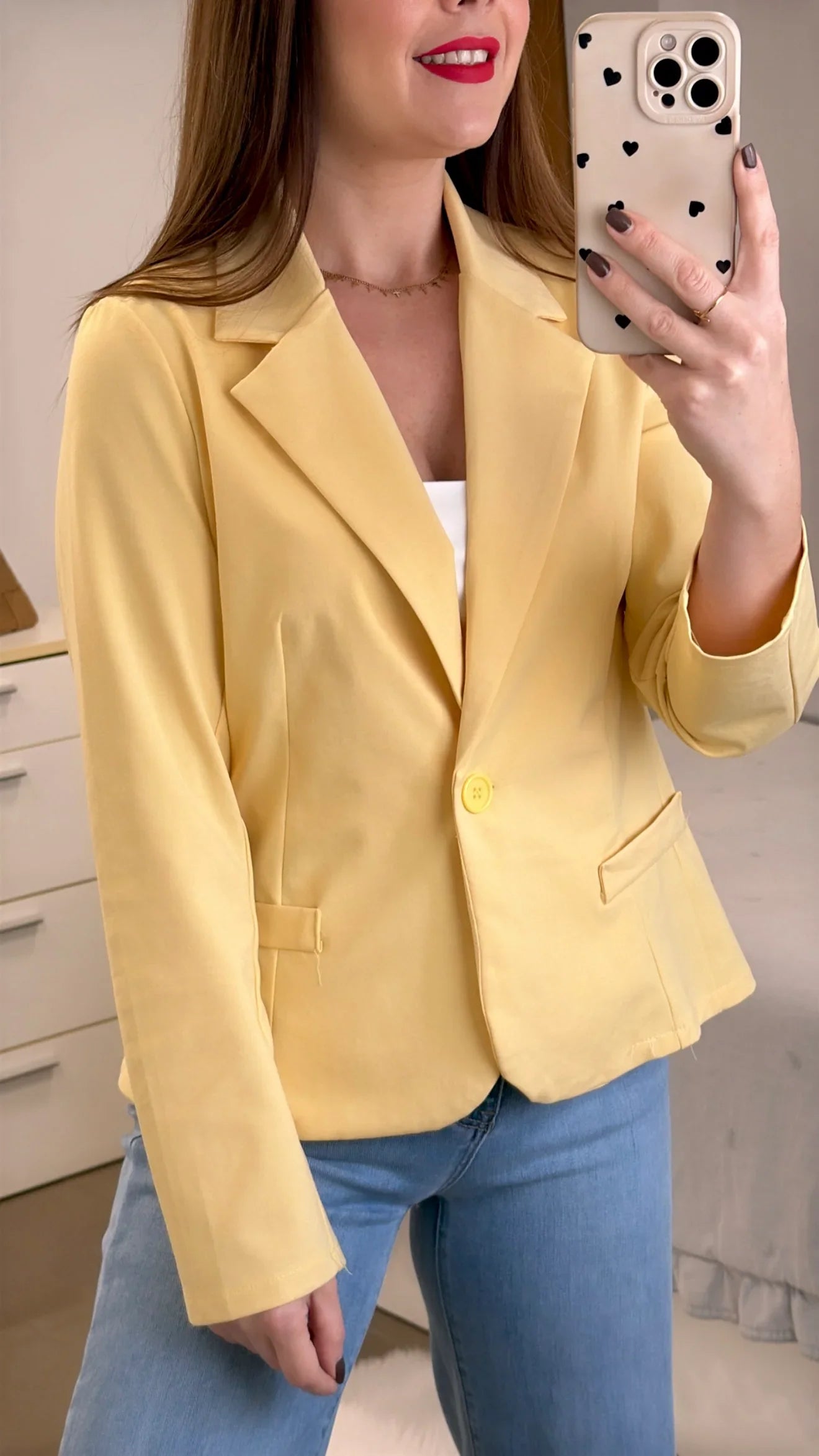 Esta Americana Básica de algodón ofrece una amplia variedad de tallas, desde la S hasta la XL, para adaptarse a diferentes cuerpos. Con un tejido de 53% algodón, 9% elastán y 38% nylon, garantiza comodidad y durabilidad. El cuello solapado le da un toque elegante y versátil.
