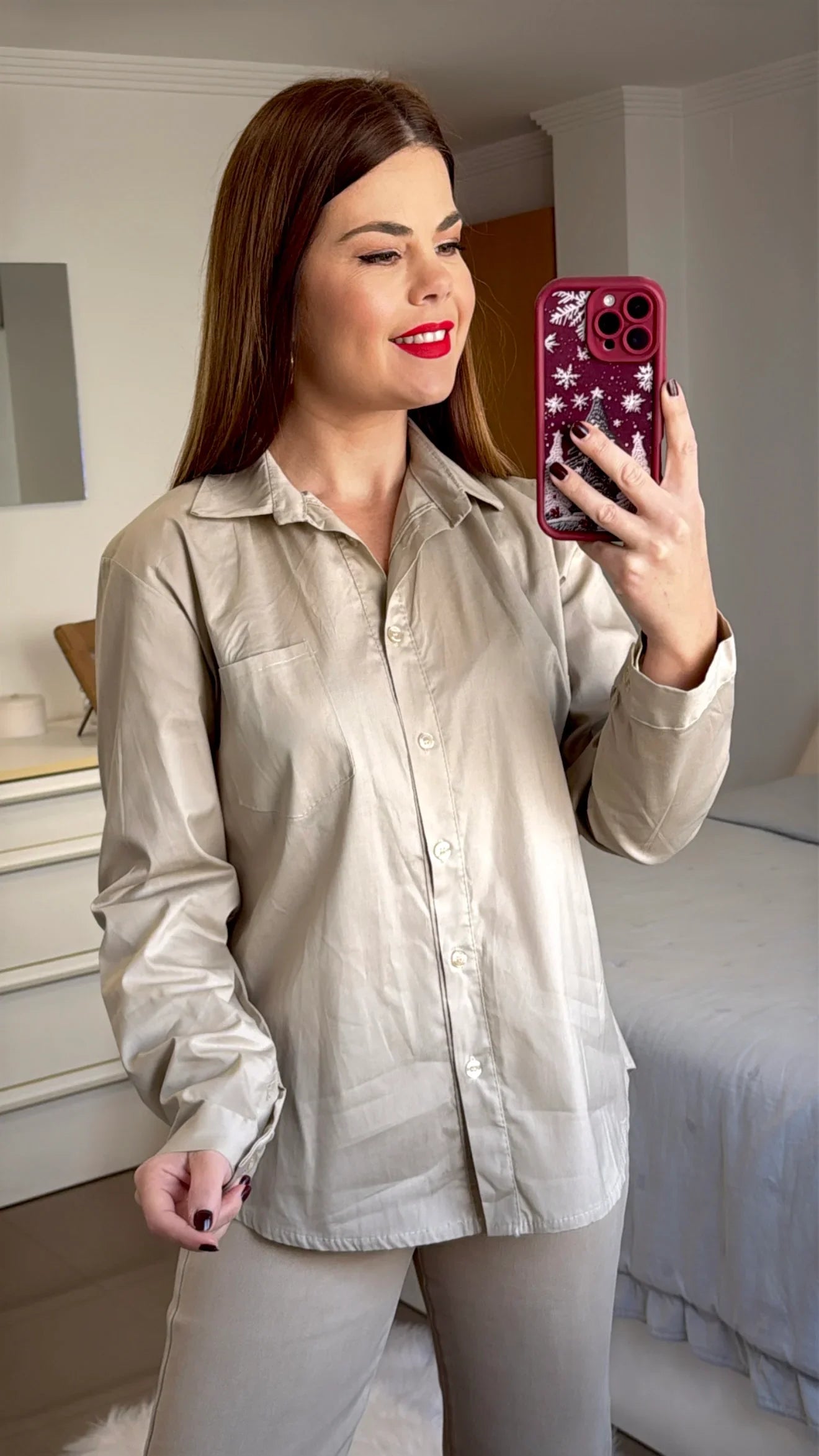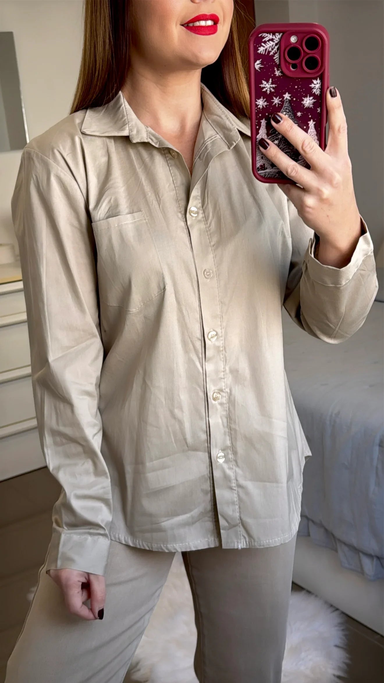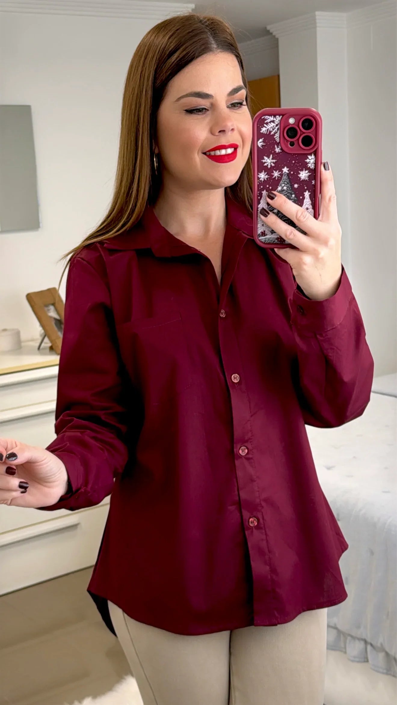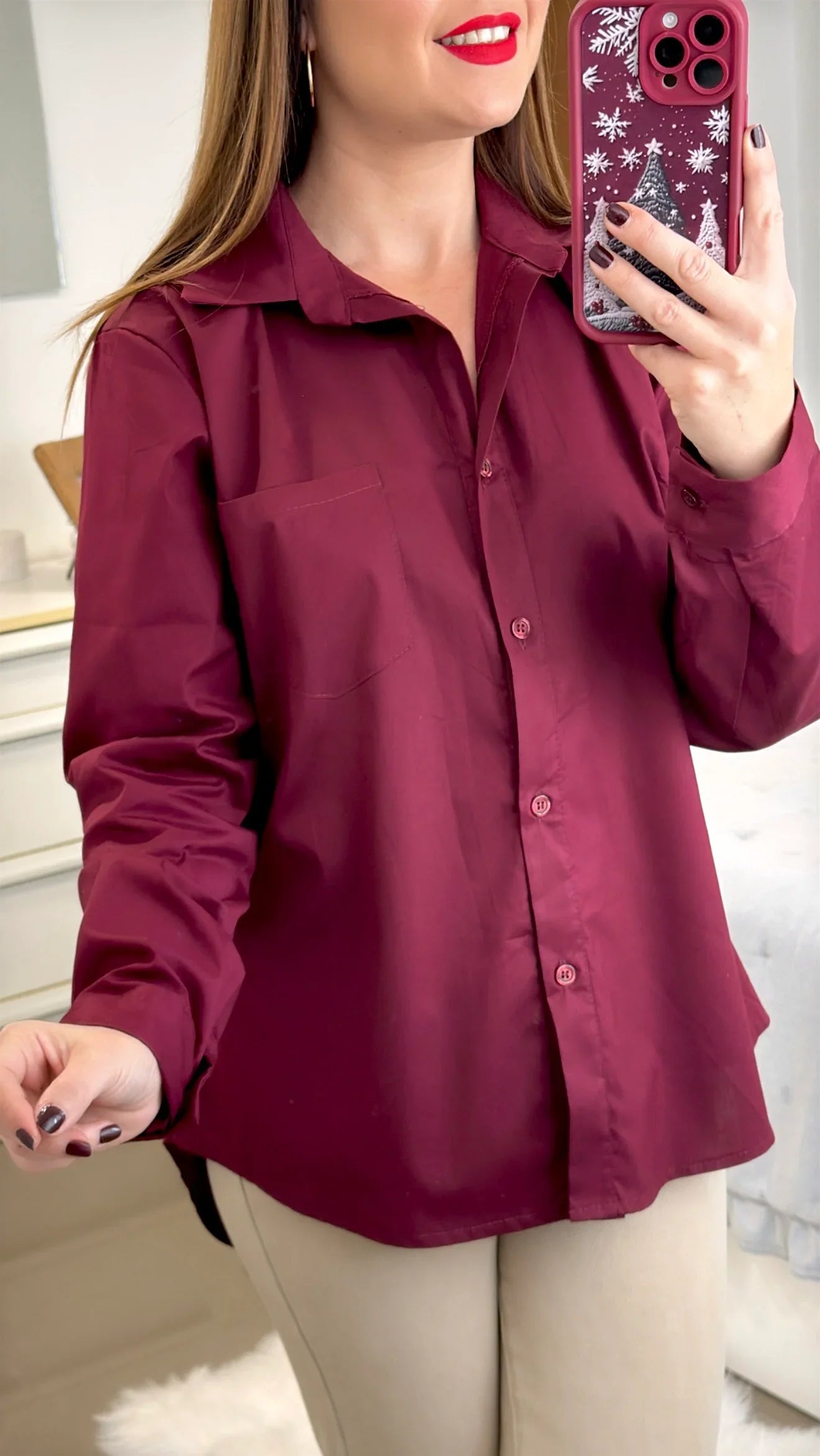 Disponible en talla única, cuello solapado. Abotonada en la parte frontal. Compuesta por 95% algodón y 5% elastan.