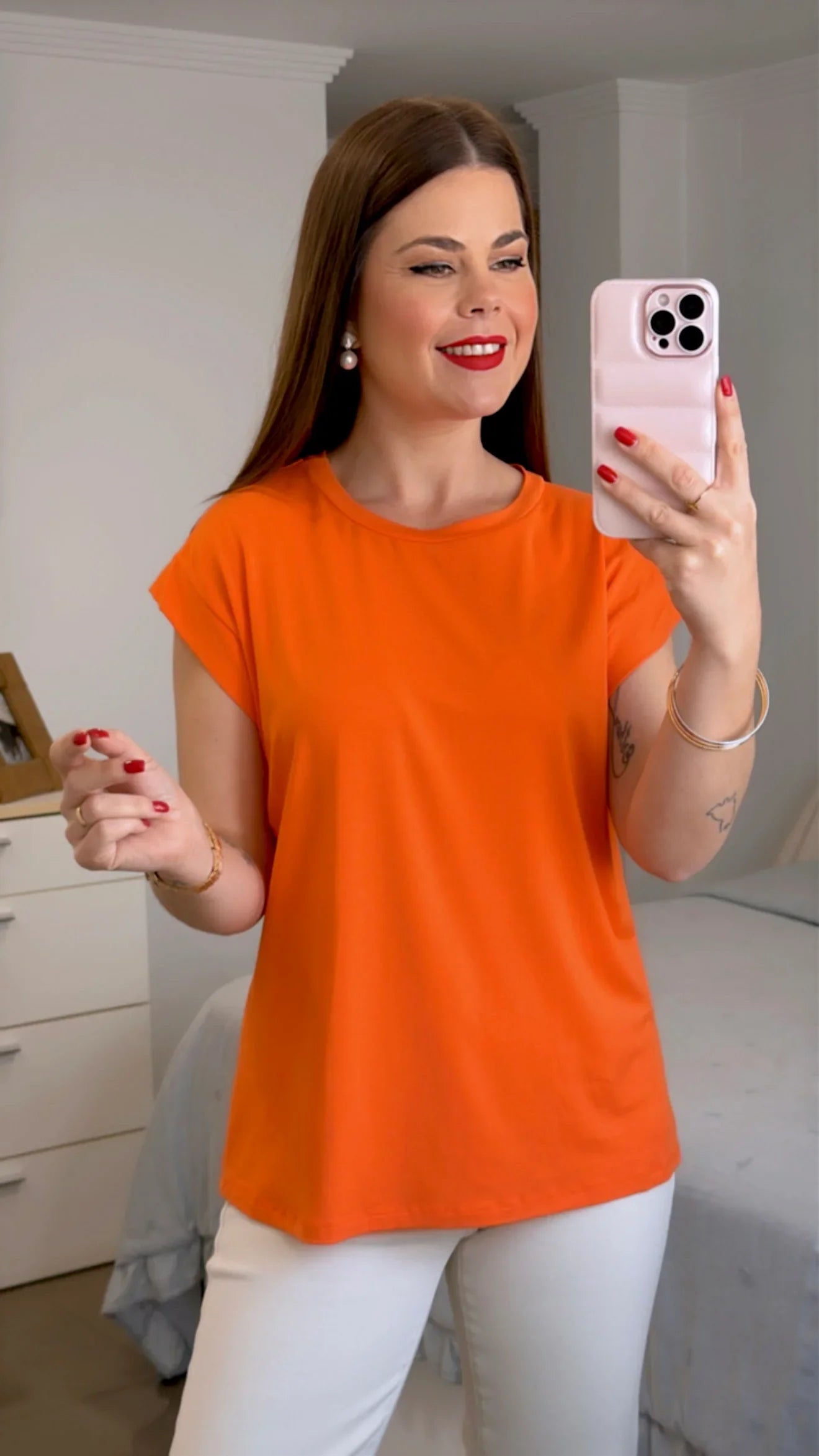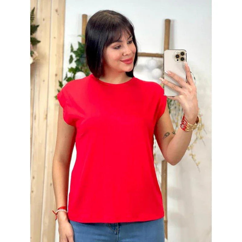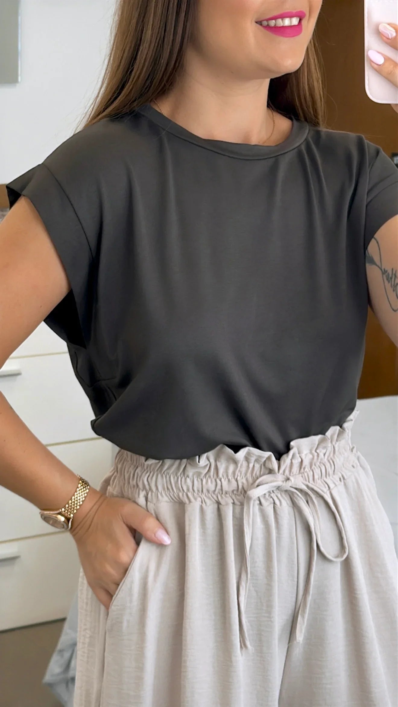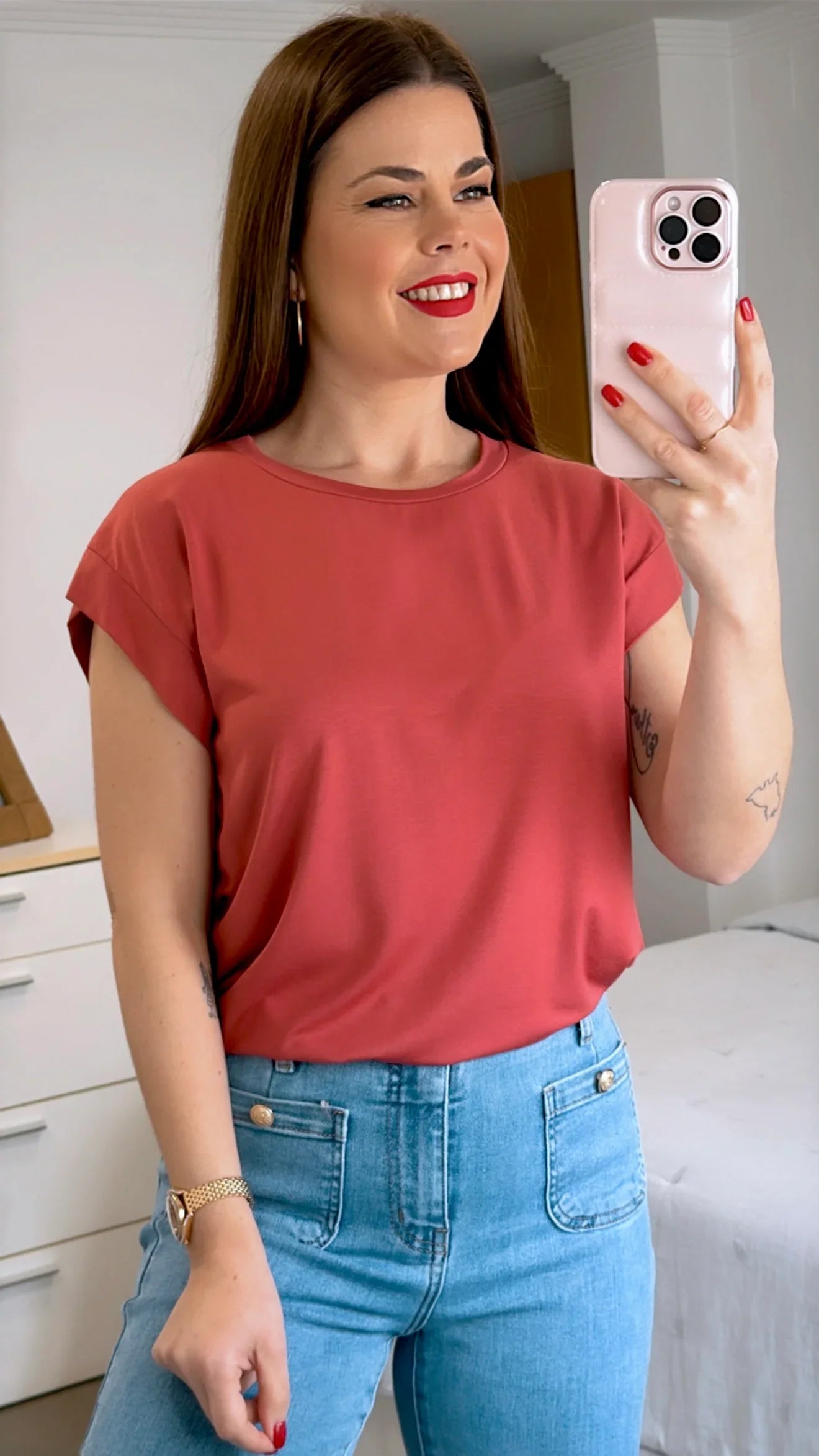 Presentamos CAMISETA CAMI, una camiseta básica de manga corta tipo oversize. Está hecha de una combinación de 95% viscosa y 5% elastano para un vestir cómodo y con movimiento entre tus actividades diarias. Disponible en talla única, recomendamos consultar las medidas para garantizar un ajuste perfecto.