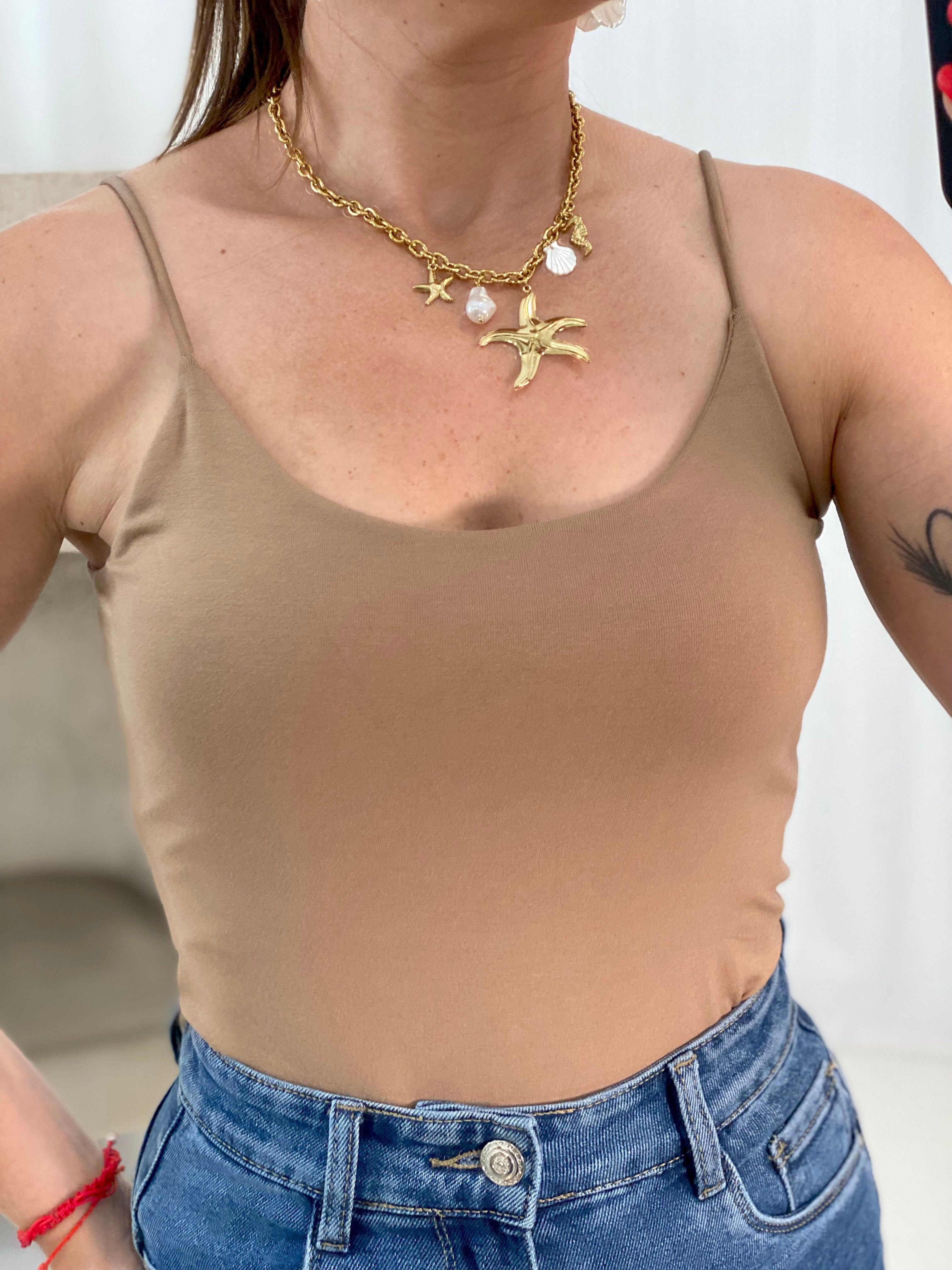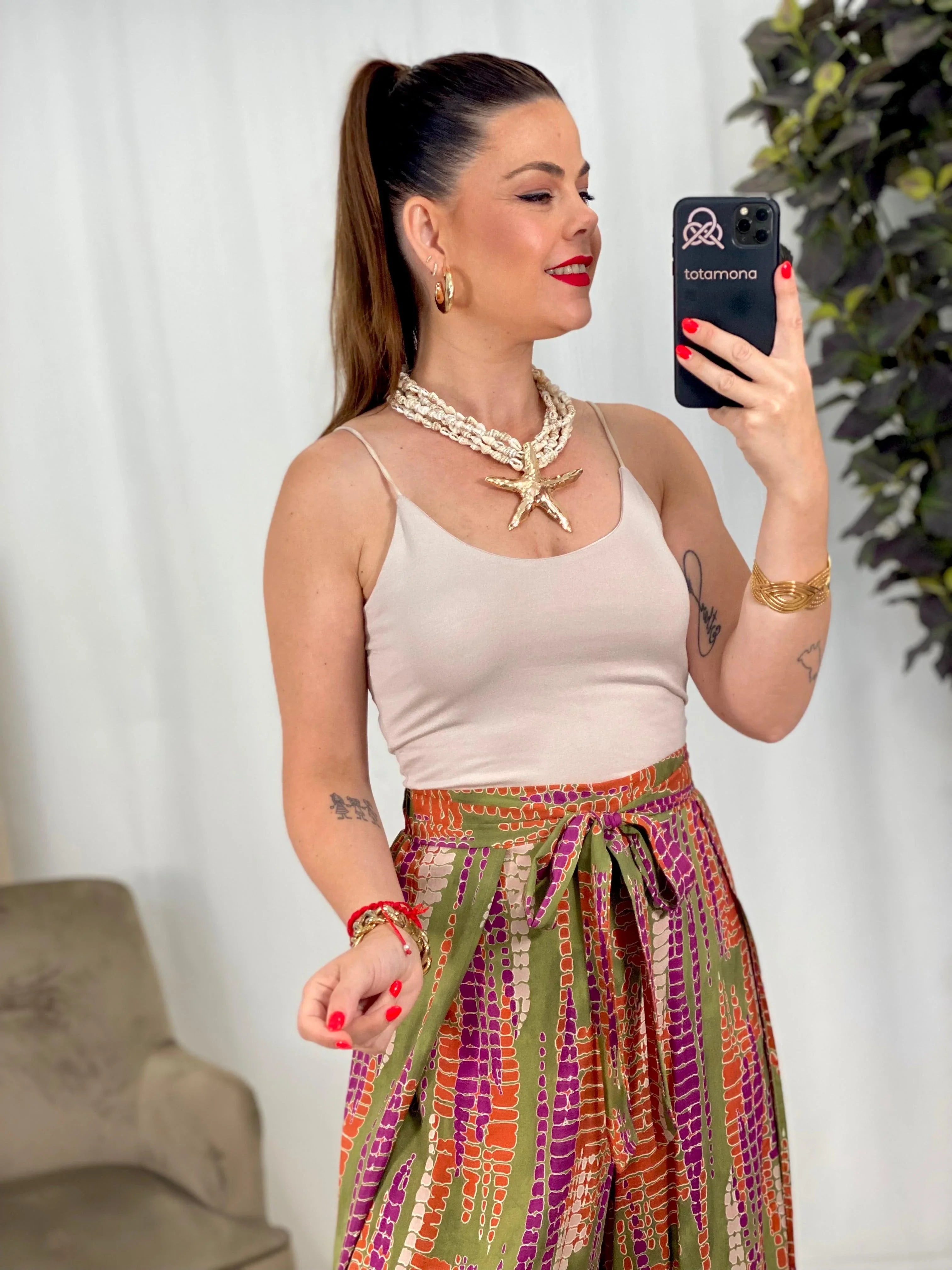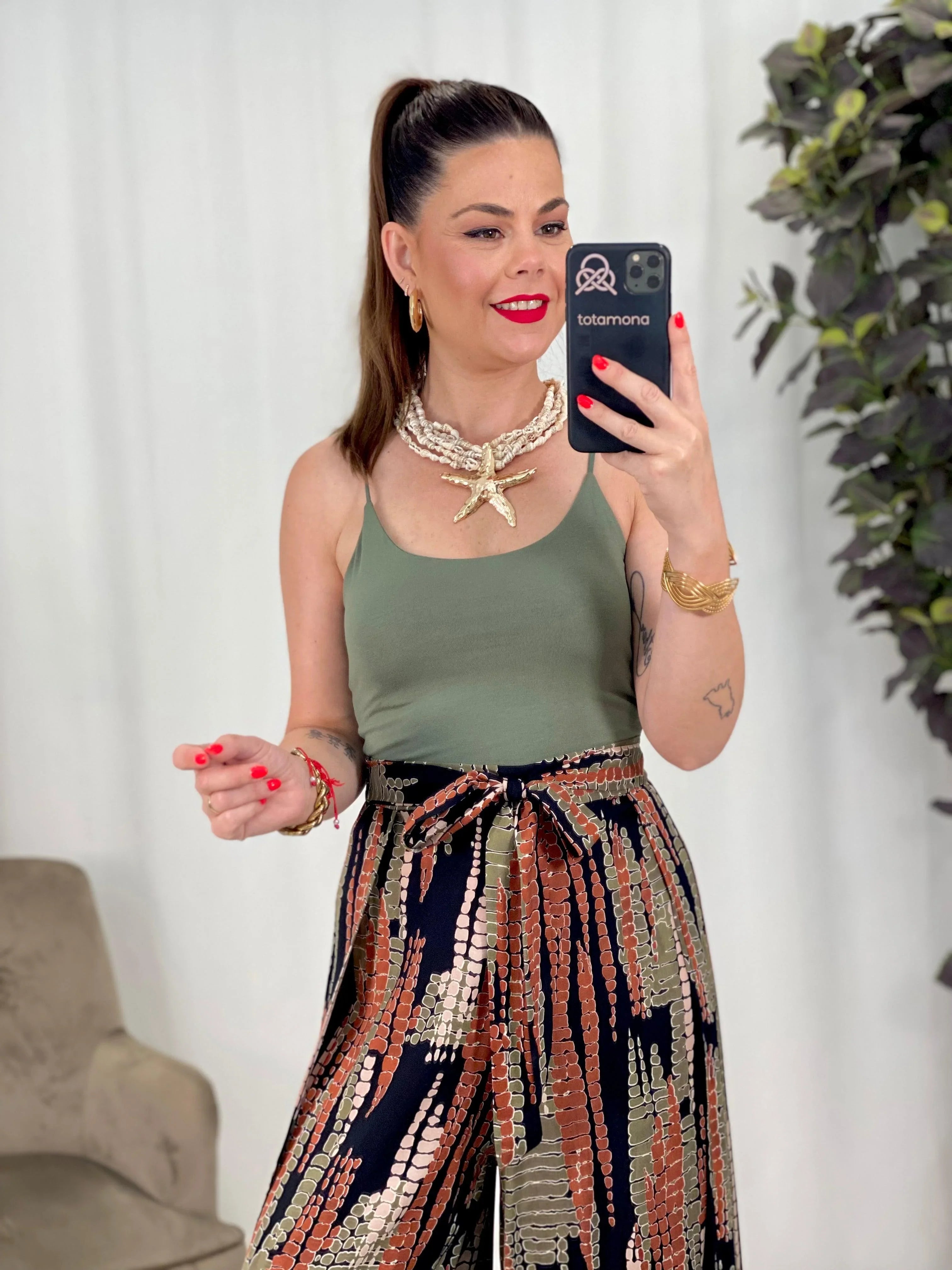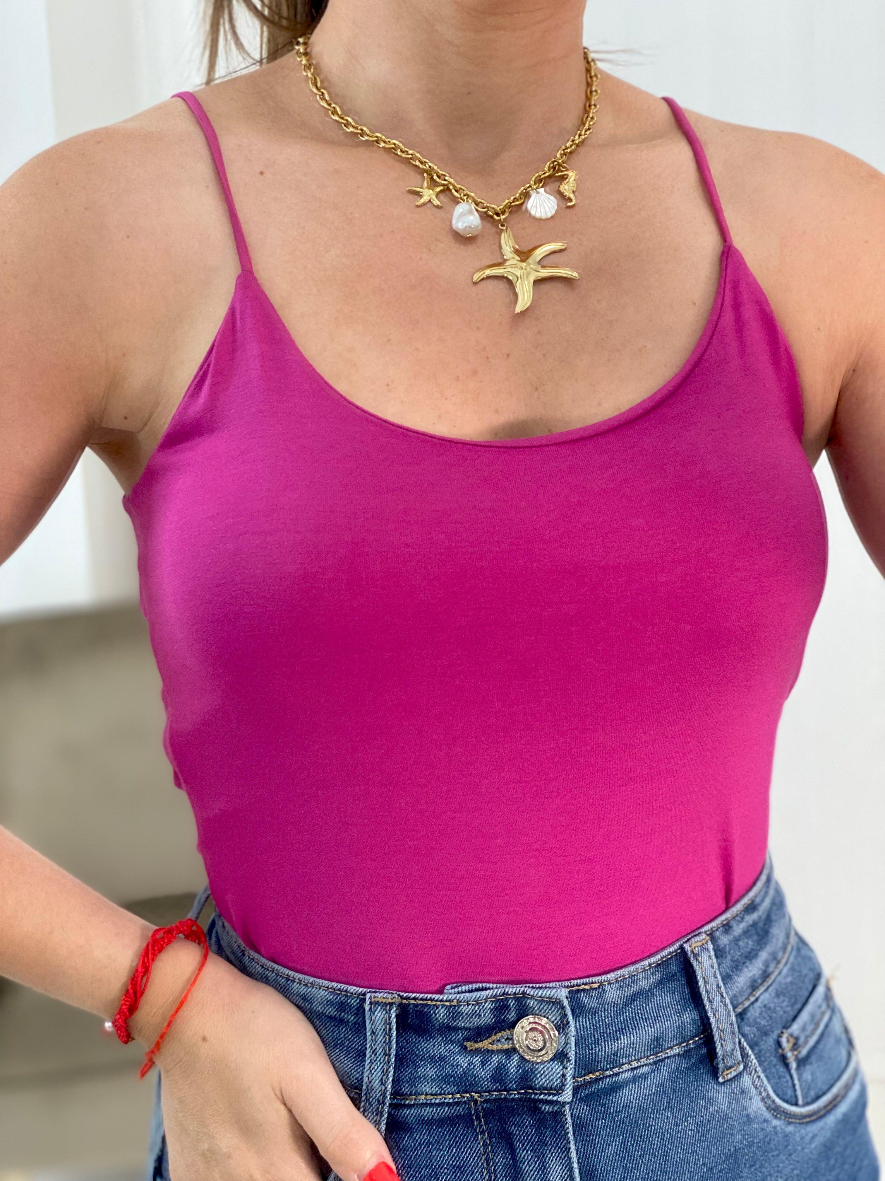 Esta camiseta de tirante fino está diseñada en talla única para adaptarse perfectamente a tu cuerpo. Con su ajuste cómodo y versátil, podrás lucir un look elegante y moderno en cualquier ocasión. Hecha con materiales de calidad, es una prenda imprescindible en tu armario. ¡Hazte con la tuya ahora!