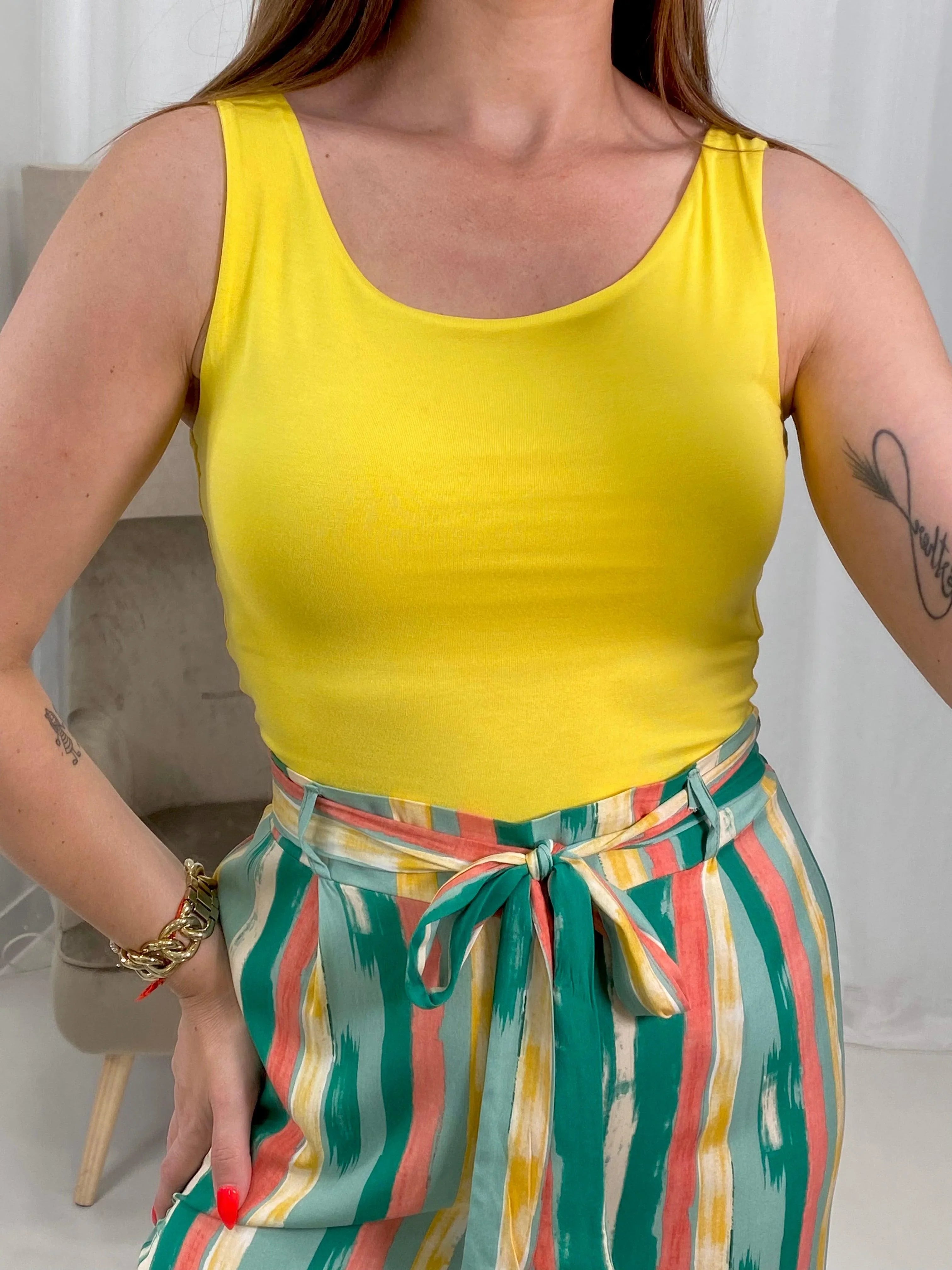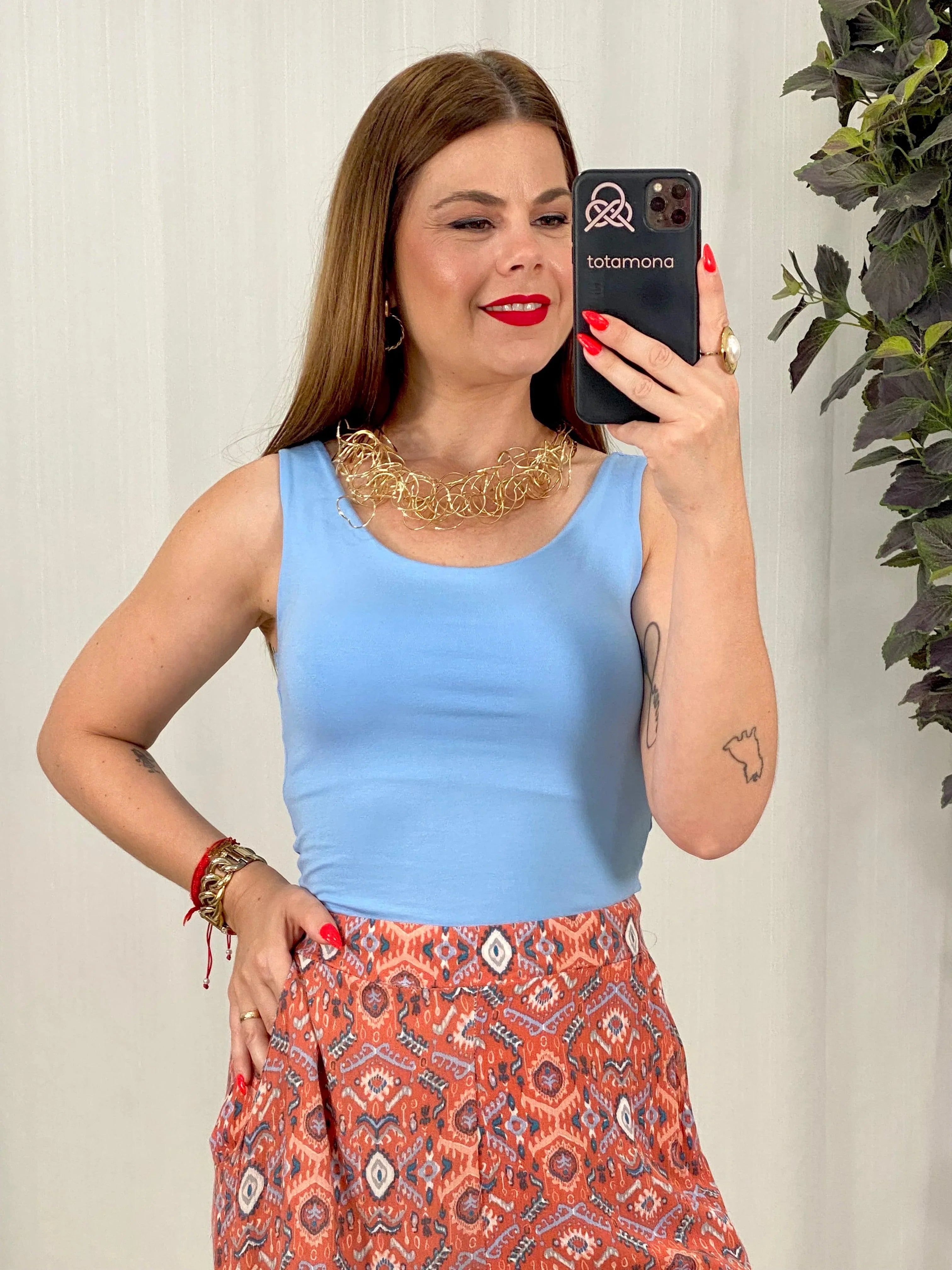 TOP BACO es una camiseta básica de tirante ancho con un escote redondo. Está confeccionada en una mezcla de 95% viscosa y 5% elastano para un ajuste cómodo. Disponible en una talla única con medidas recomendadas. Una prenda imprescindible para tu outfit diario.