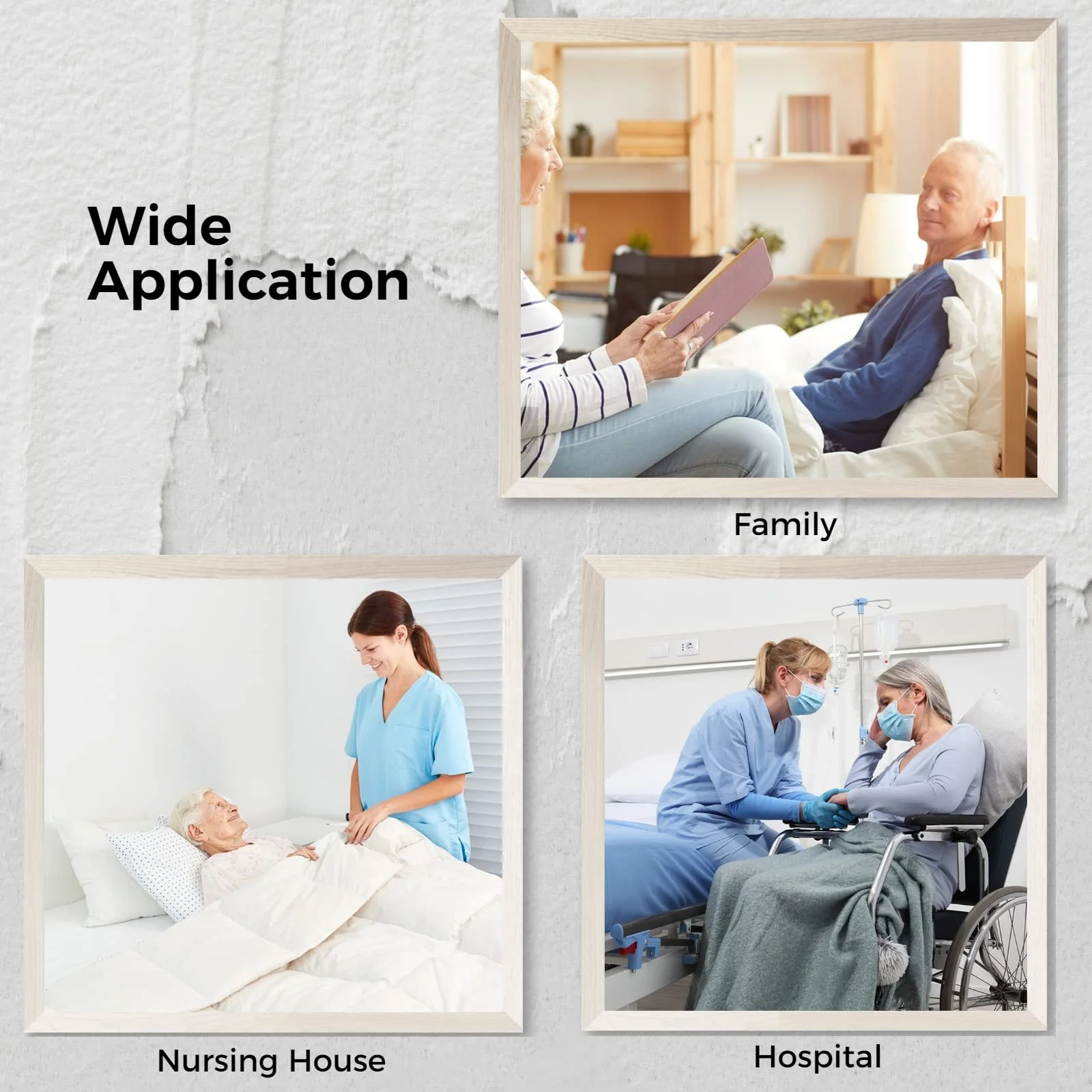 【Extensive Application】The products are widely used in many common scenarios for easy operation. The hospital can adopt the devices to nurse the patients after surgery. The family can use them to take care of the bedridden member. Also, it can come into service in nursing houses for senior people