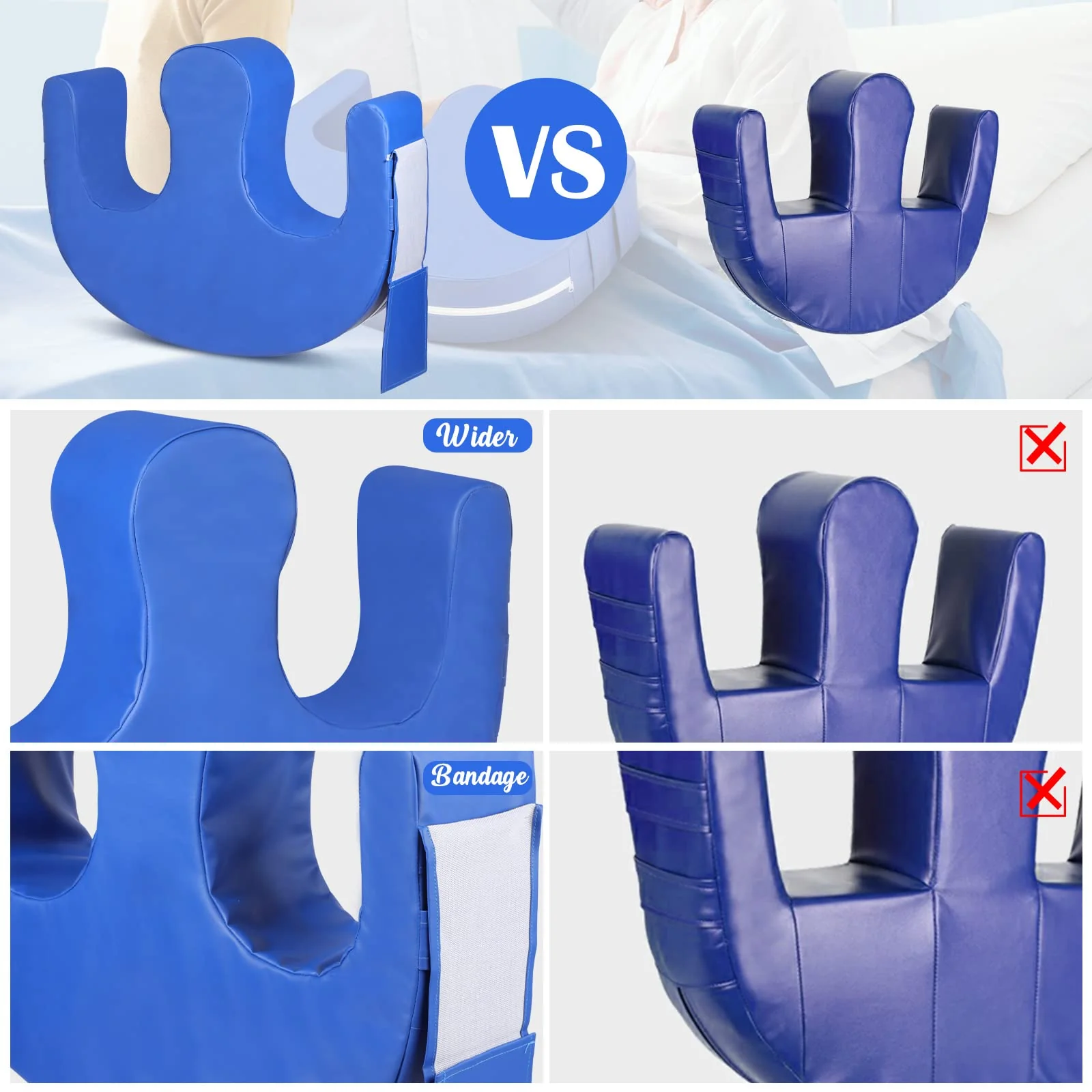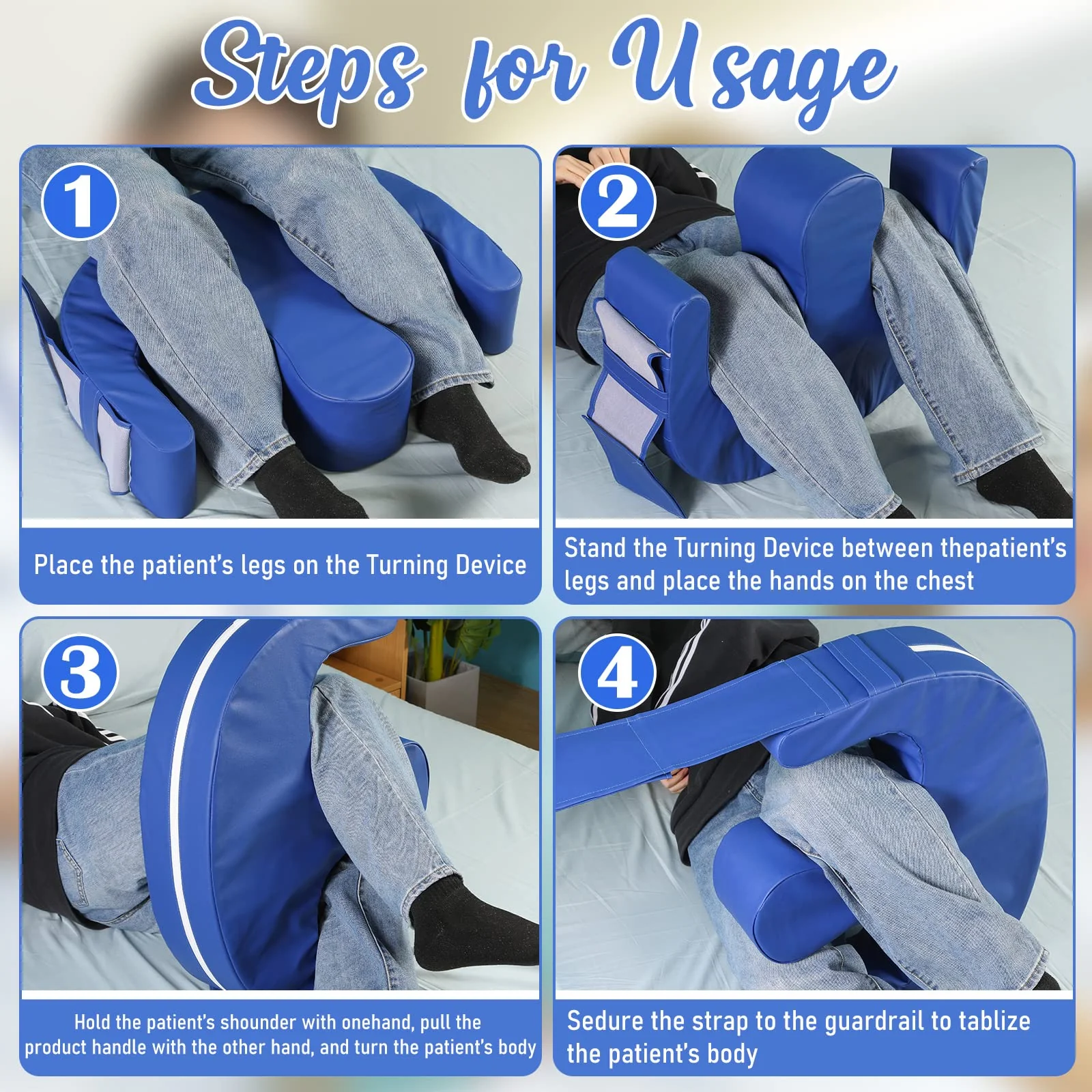 【Efficient Ergonomic Designs】This positioner is shaped like a U letter with two coves for patients’ legs. They are ergonomically designed and user-friendly because the U shape is high-efficient according to dynamics. Their U shape can help the patients turn over their bodies 180 degrees. Besides, They have two assisted straps on both sides to help turn over